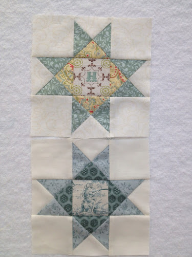 This is the set of templates we used for the class. It makes a 9" block and using them made the process very easy. We traced both inside and outside the template and cut on the outside line while the inside line was the stitching line. The templates are perfect for fussy cutting too.